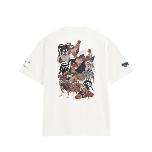 Roosters and cactus (White t-shirt)